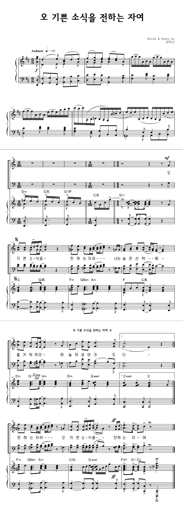 | 오 기쁜 소식을 전하는 자여 | 성가 4부 + 피아노 반주 |
