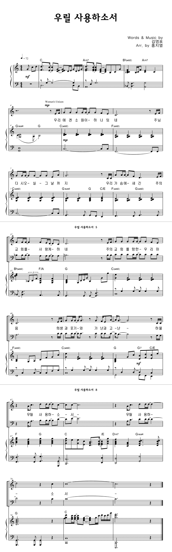 | 우릴 사용하소서 | 성가 3부 + 피아노 반주 |