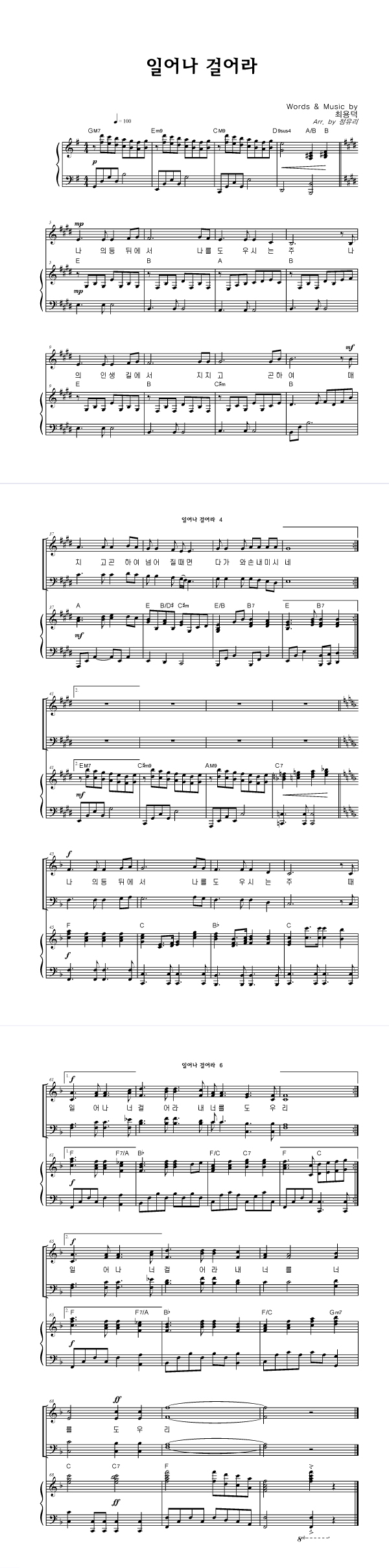 | 일어나 걸어라 | 성가 4부 + 피아노 반주 |