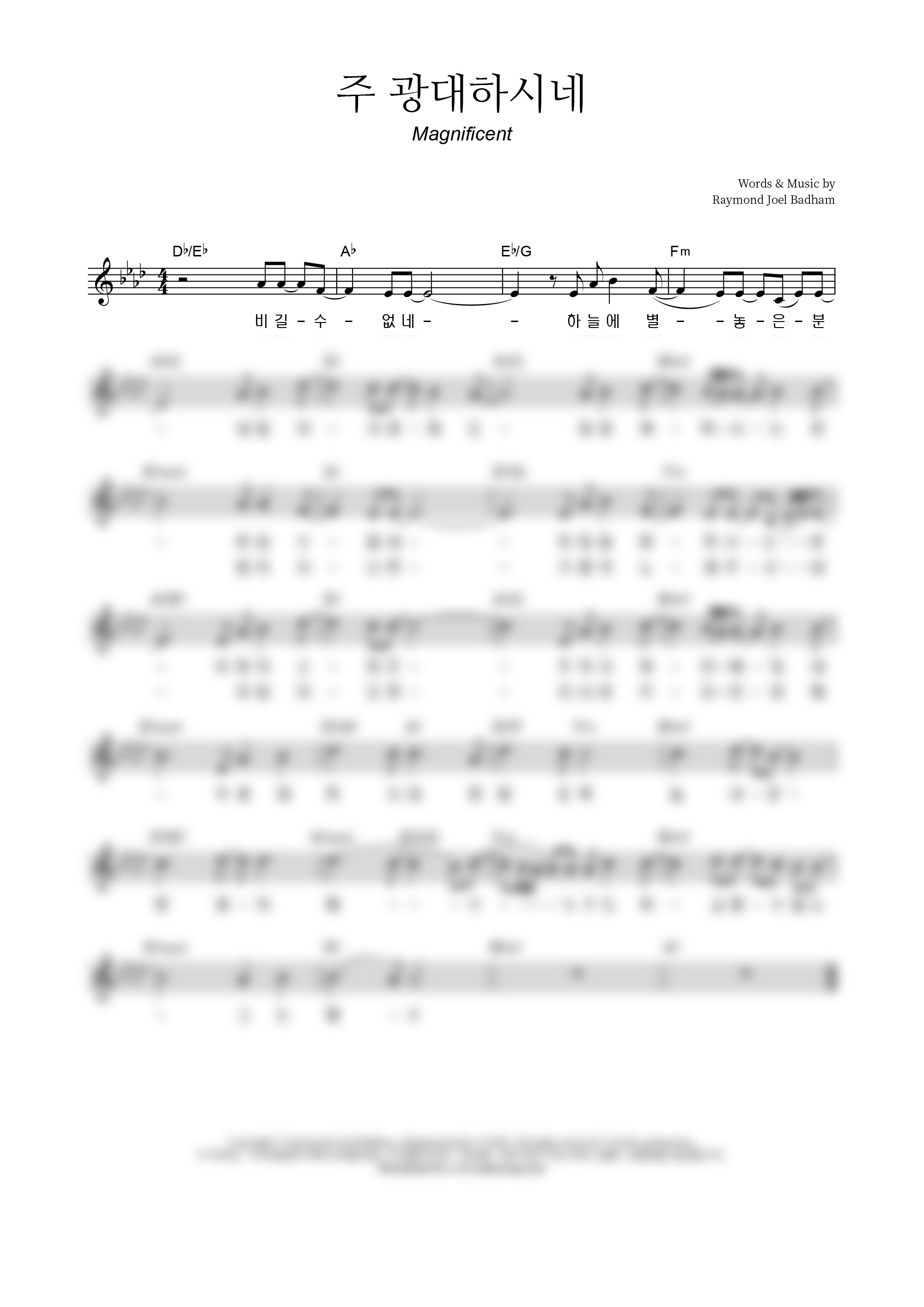 | 주 광대하시네 | 성가 4부 + 피아노 반주 |