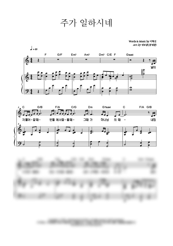 | 주가 일하시네 | 성가 3부 + 피아노 반주 |
