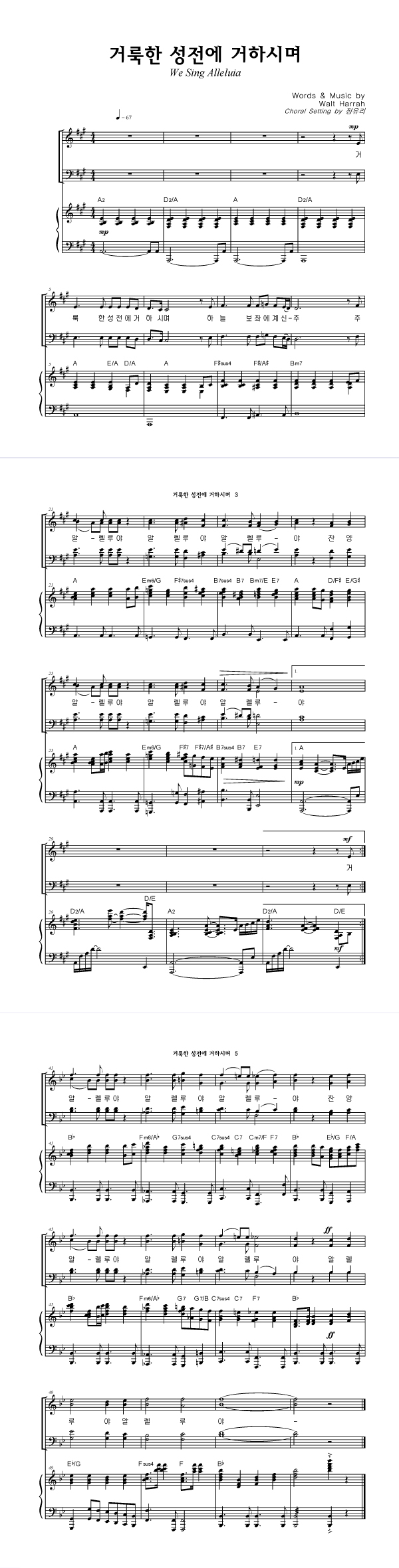 | 할렐루야 살아계신 주 큰글씨 | 성가 4부 + 피아노 반주 |
