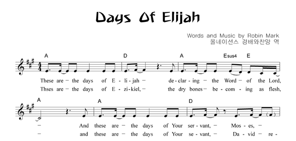 | 지금은 엘리야 때 처럼 큰글씨 | 단선 |