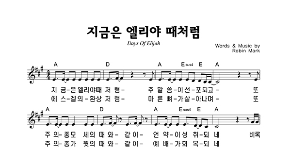 | 지금은 엘리야 때 처럼 | 성가 4부 + 피아노 반주 |