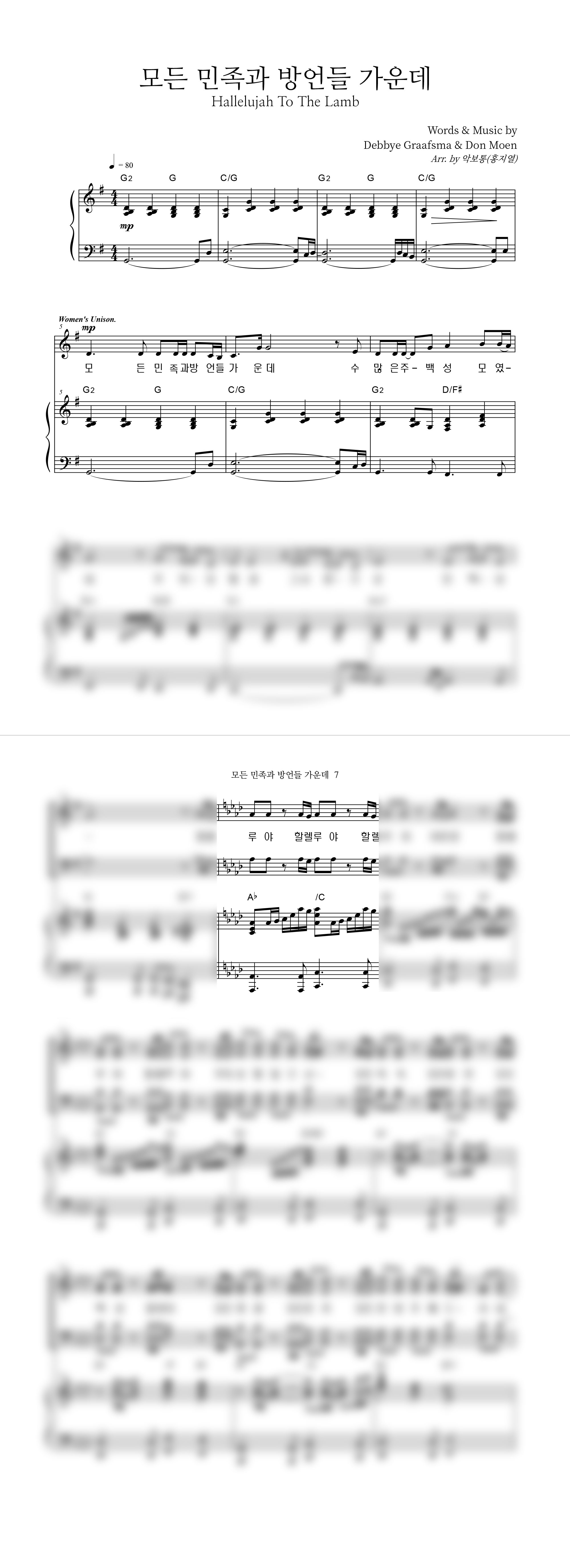 | 모든 민족과 방언들 가운데 큰글씨 | 성가 4부 + 피아노 반주 |