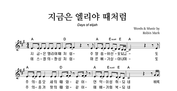 | 지금은 엘리야 때 처럼 | 성가 2부 + 피아노 반주 |