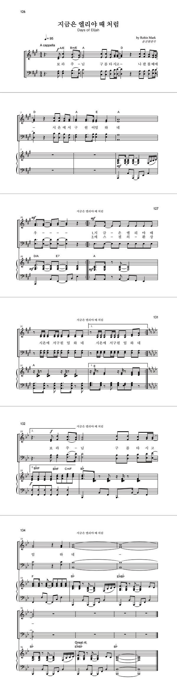 | 지금은 엘리야 때 처럼 | 성가 3부 + 피아노 반주 |