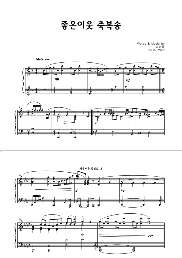 | 축복송 | 성가 4부 + 피아노 반주 |