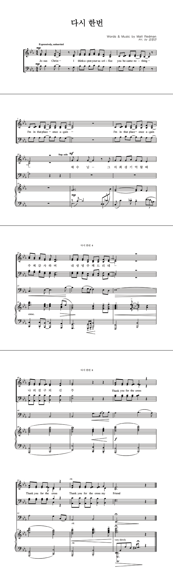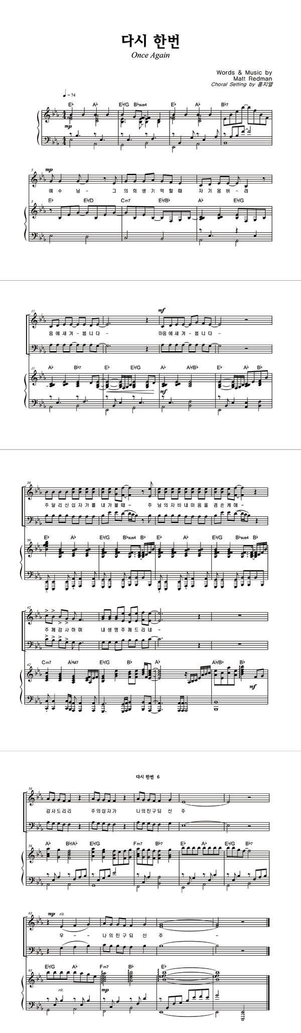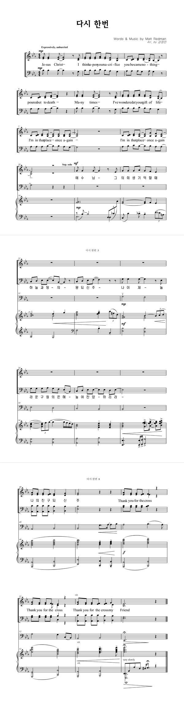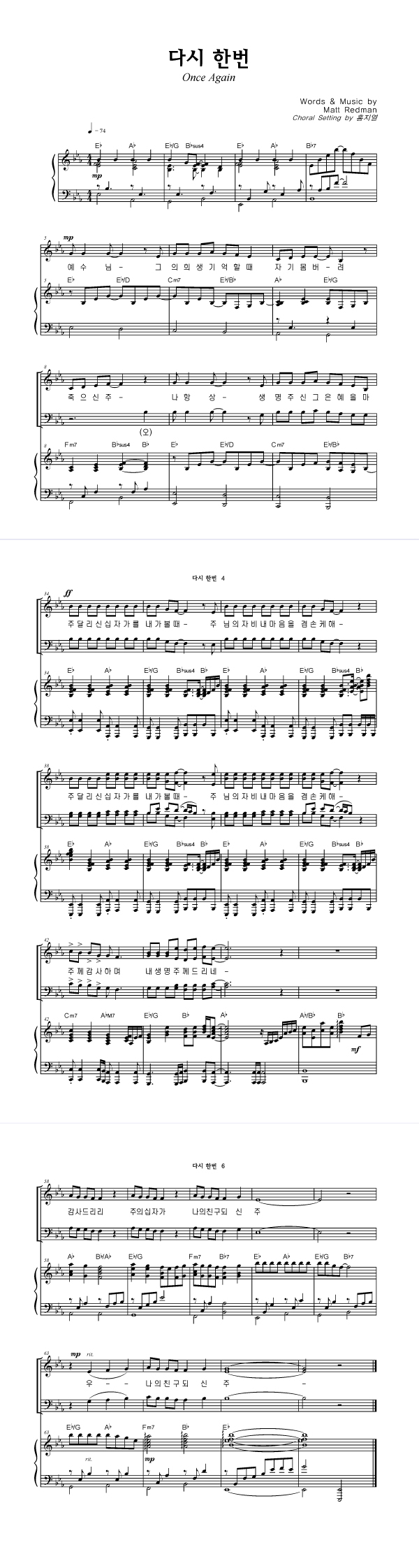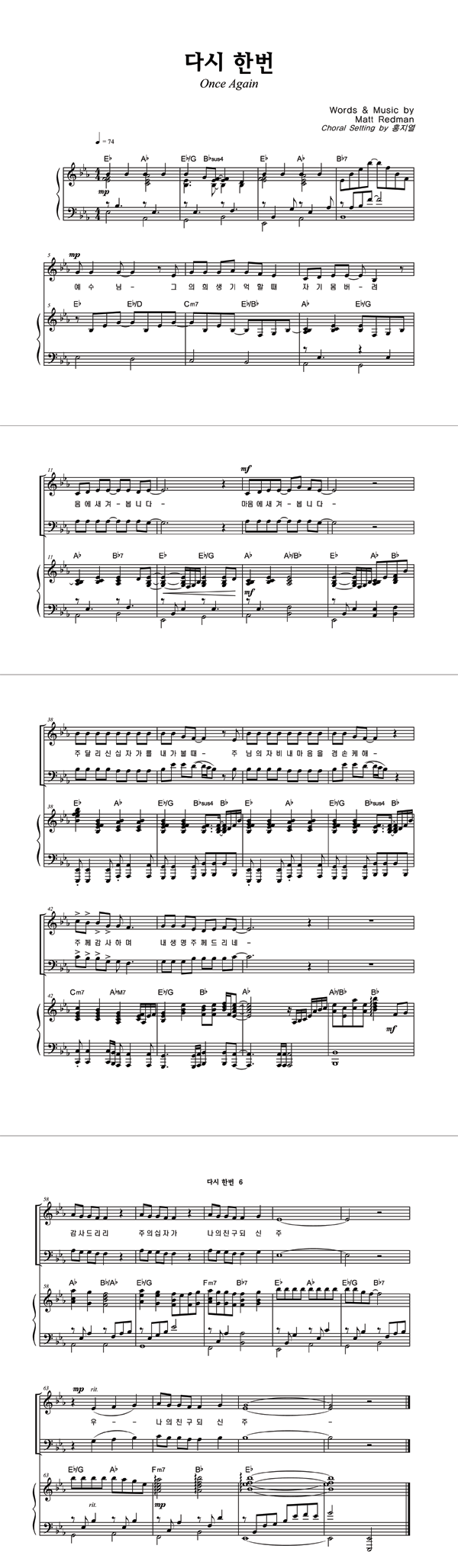 | 다시 한번 | 성가 4부 + 피아노 반주 |