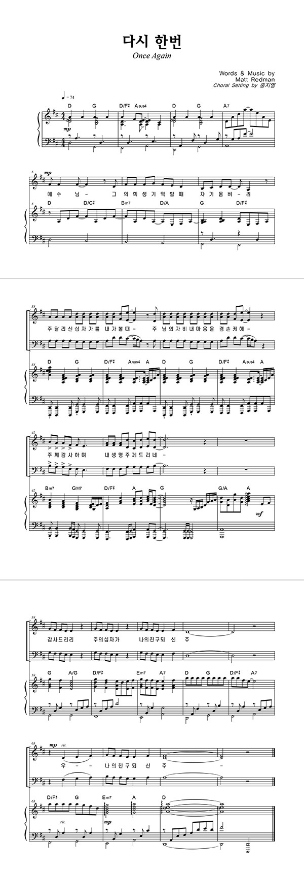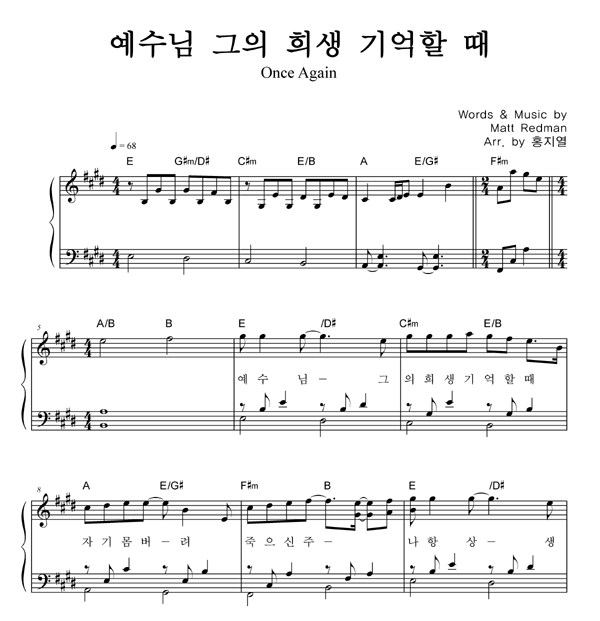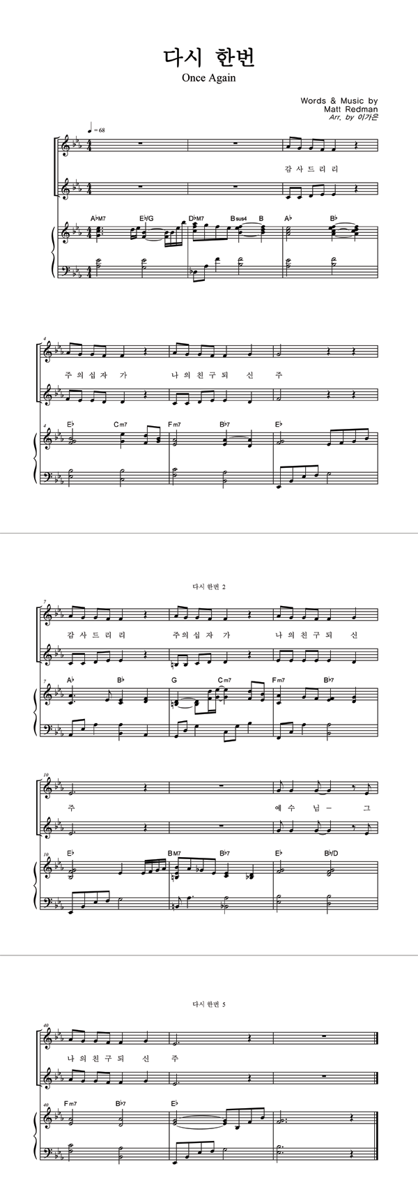 | 다시 한번 | 성가 2부 + 피아노 반주 |