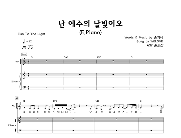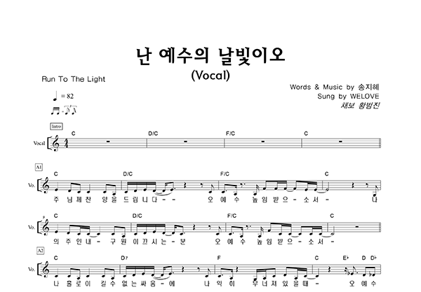 '난 예수의 날빛이오' 의 다른 악보형식