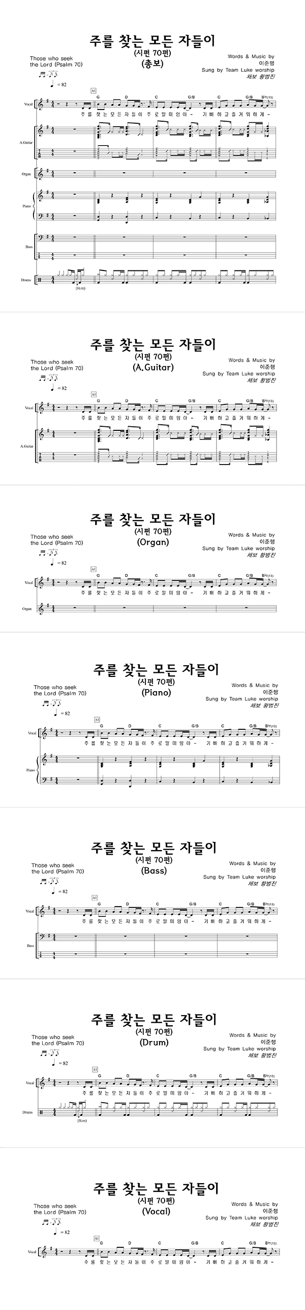 '주를 찾는 모든 자들이' 의 다른 악보형식