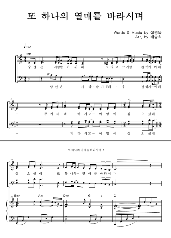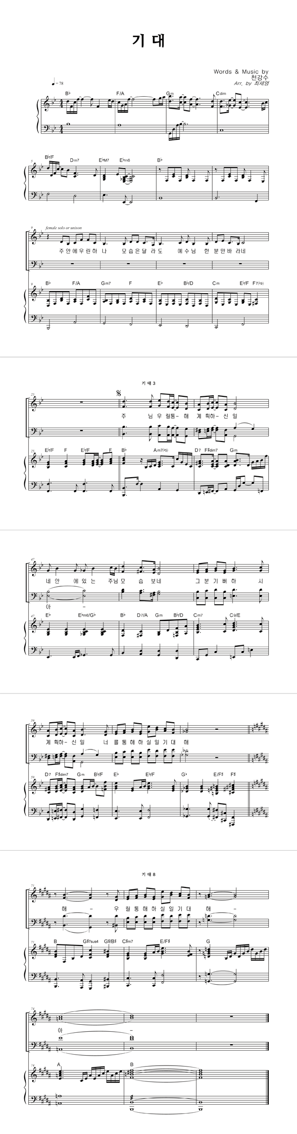 | 주를 향한 나의 사랑을 | 성가 2부 + 피아노 반주 |