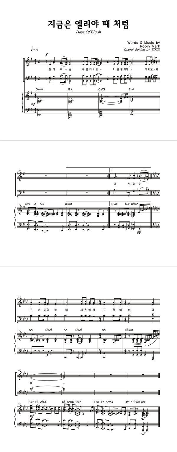 | 지금은 엘리야 때 처럼 | 성가 3부 + 피아노 반주 |