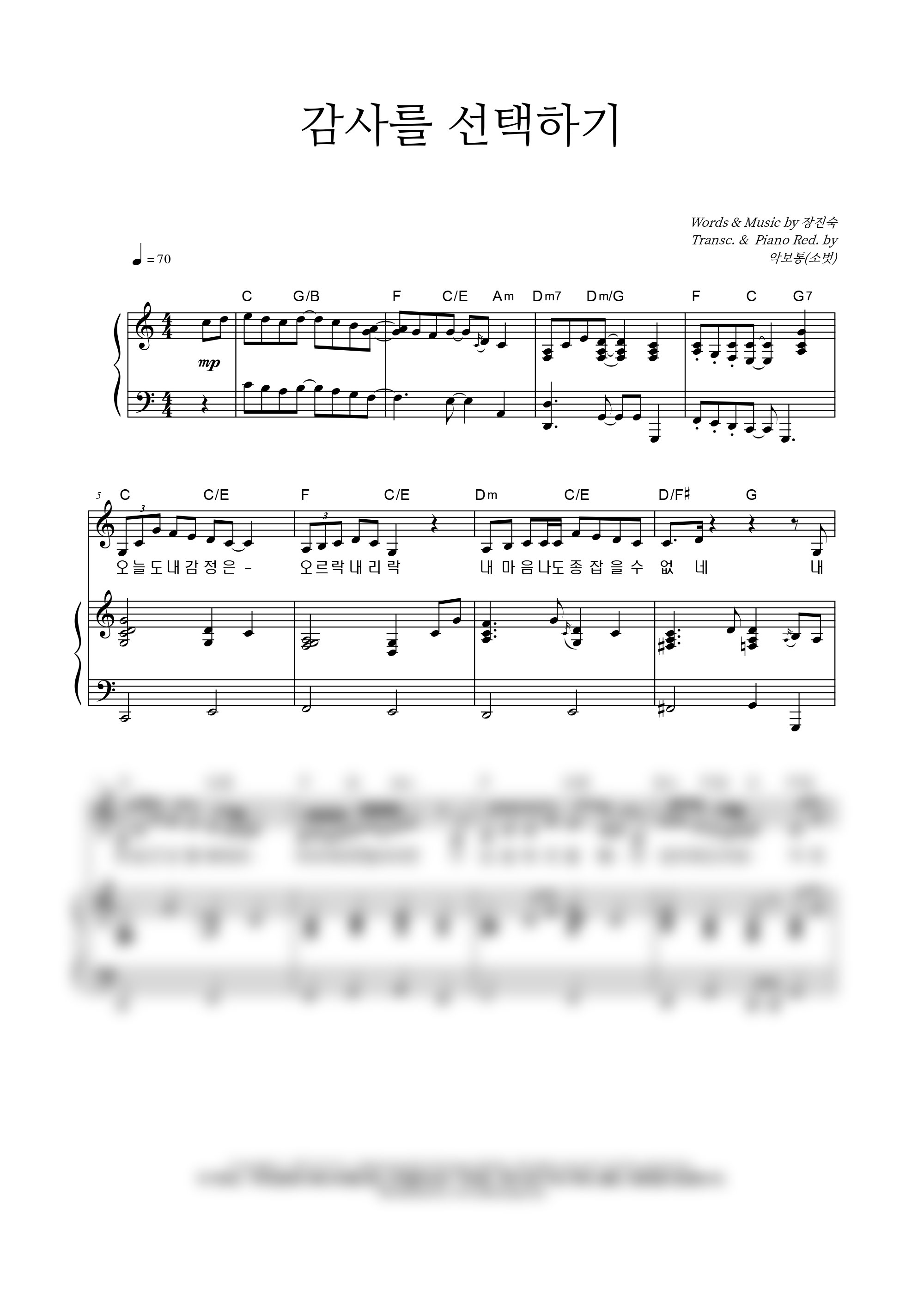 | 감사를 선택하기 | 성가 2부 + 피아노 반주 |