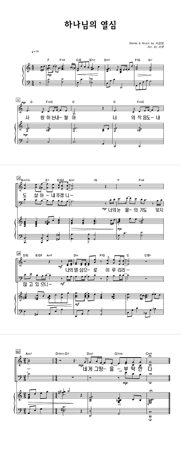 | 하나님의 열심 | 성가 2부 + 피아노 반주 |
