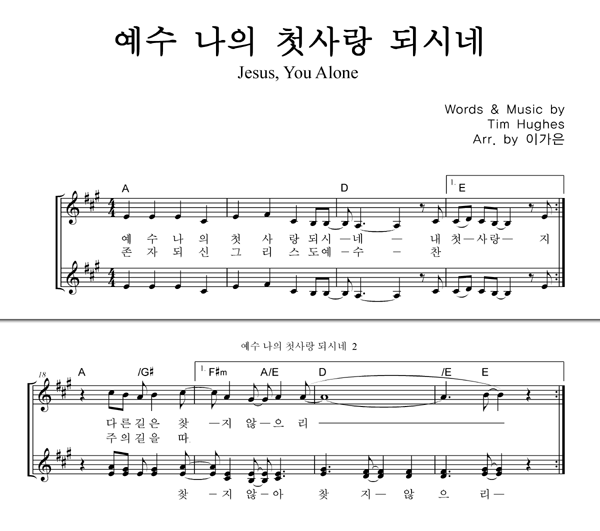 '예수 나의 첫사랑 되시네' 의 다른 악보형식