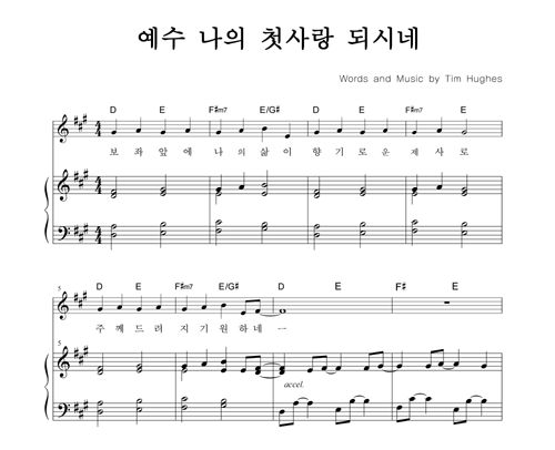 | 예수 나의 첫사랑 되시네 | 성가 4부 + 피아노 반주 |