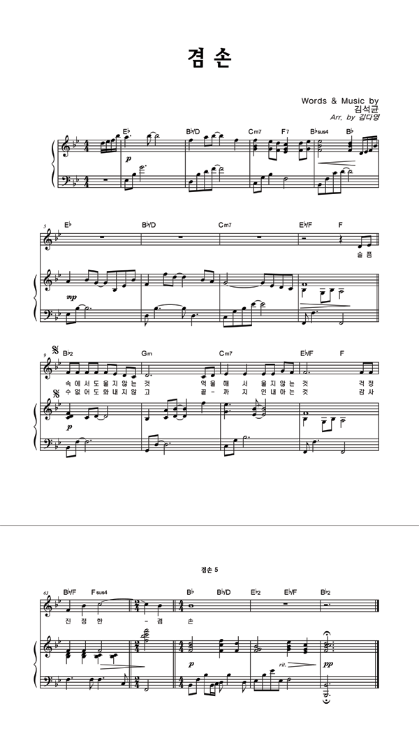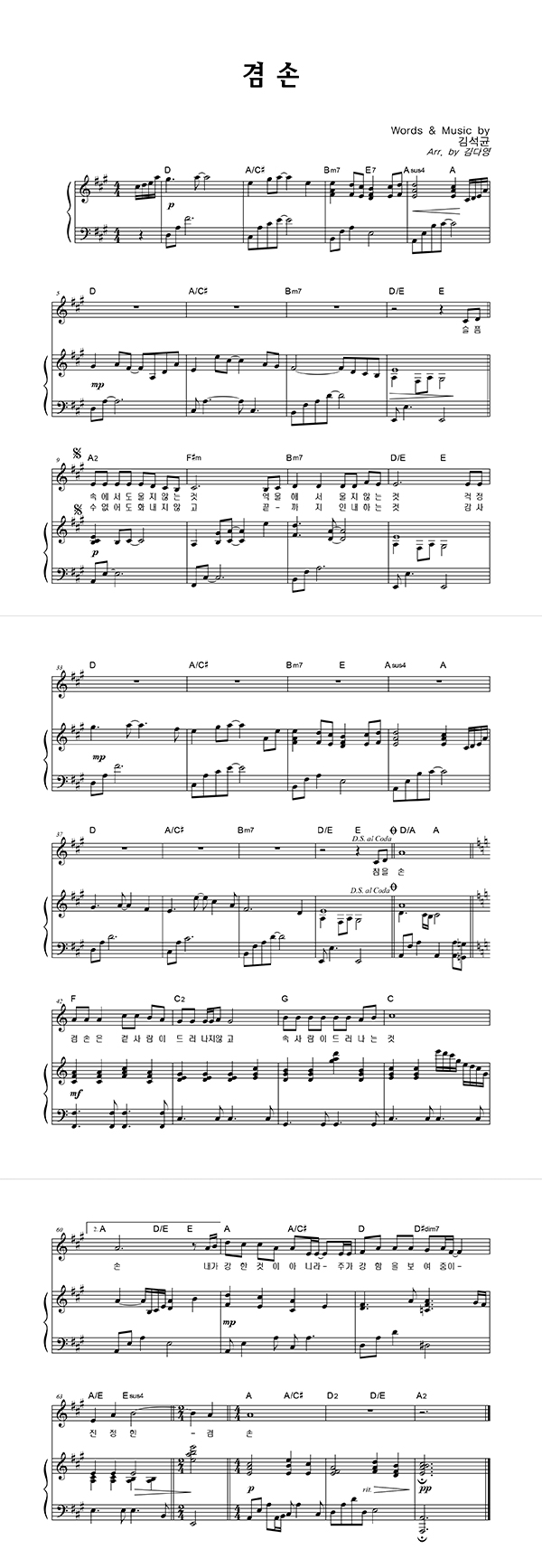 | 겸손 | 성가 4부 + 피아노 반주 |