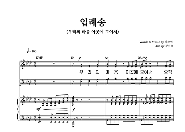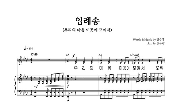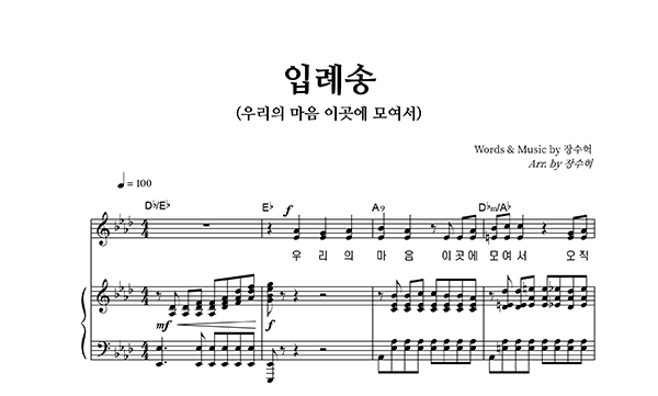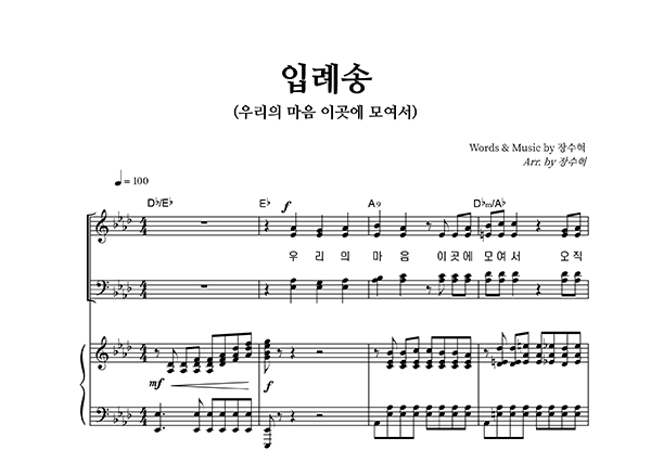 '우리의 마음 이곳에 모여서 (입례송)' 의 다른 악보형식