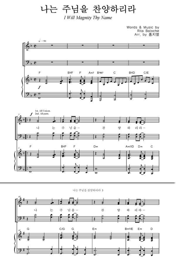 | 나는 주님을 찬양하리라 | 성가 4부 + 피아노 반주 |