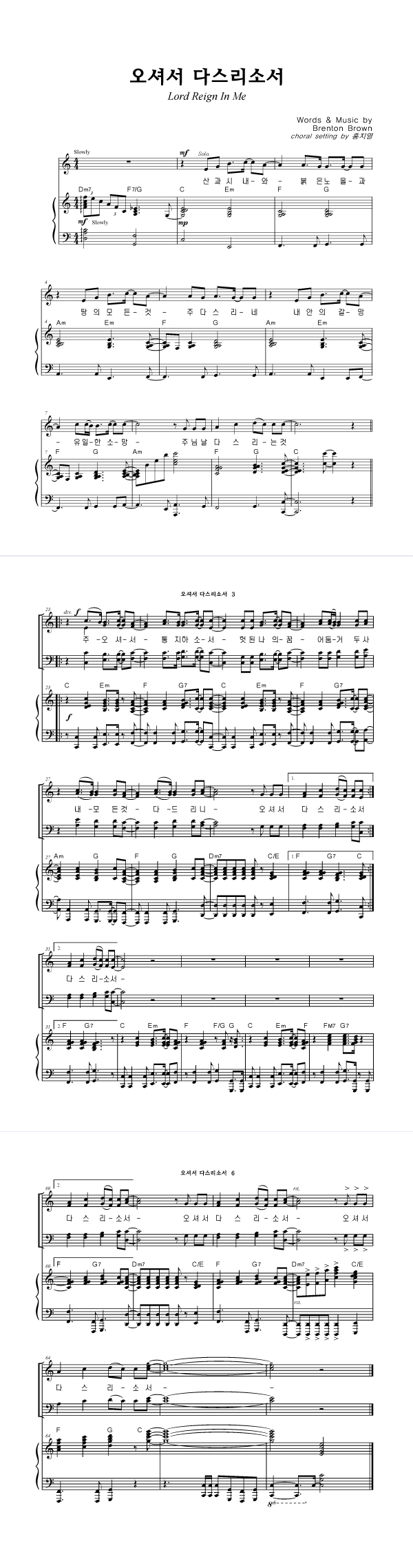 | 오셔서 다스리소서 | 성가 3부 + 피아노 반주 |