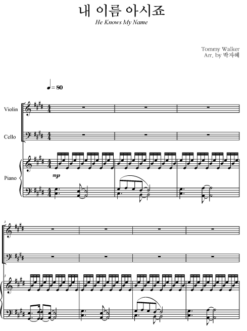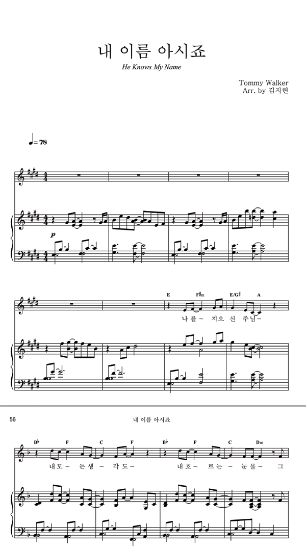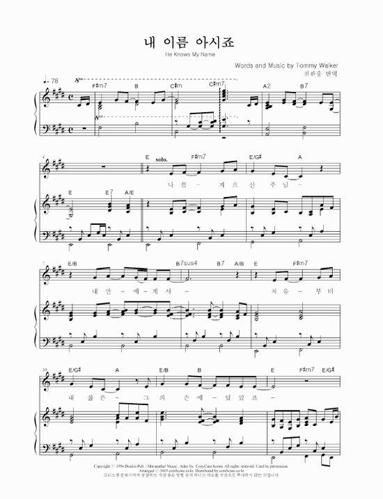 | 내 이름 아시죠 | 성가 2부 + 피아노 반주 |