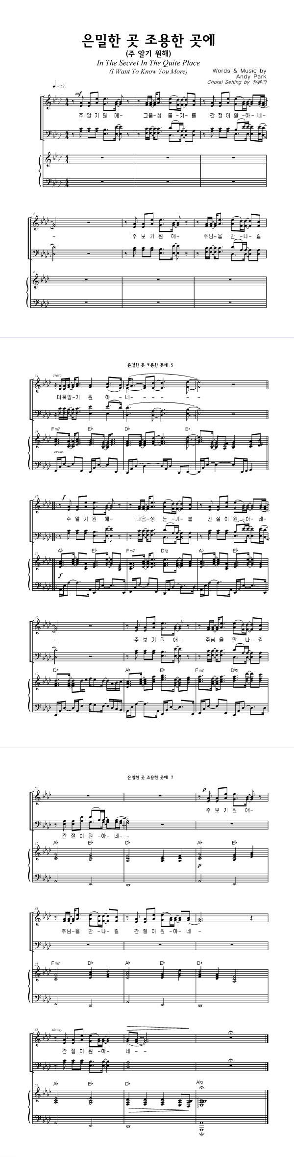 | 은밀한 곳 조용한 곳에 (주 알기 원해) | 성가 4부 + 피아노 반주 |