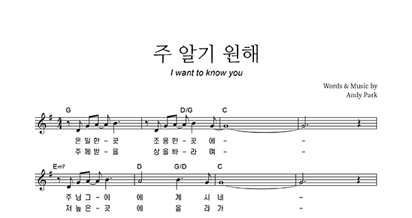 | 은밀한 곳 조용한 곳에 (주 알기 원해) | 성가 2부 + 피아노 반주 |