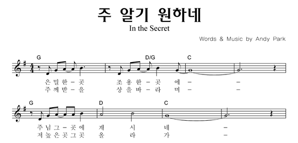 '은밀한 곳 조용한 곳에 (주 알기 원해)' 의 다른 악보형식