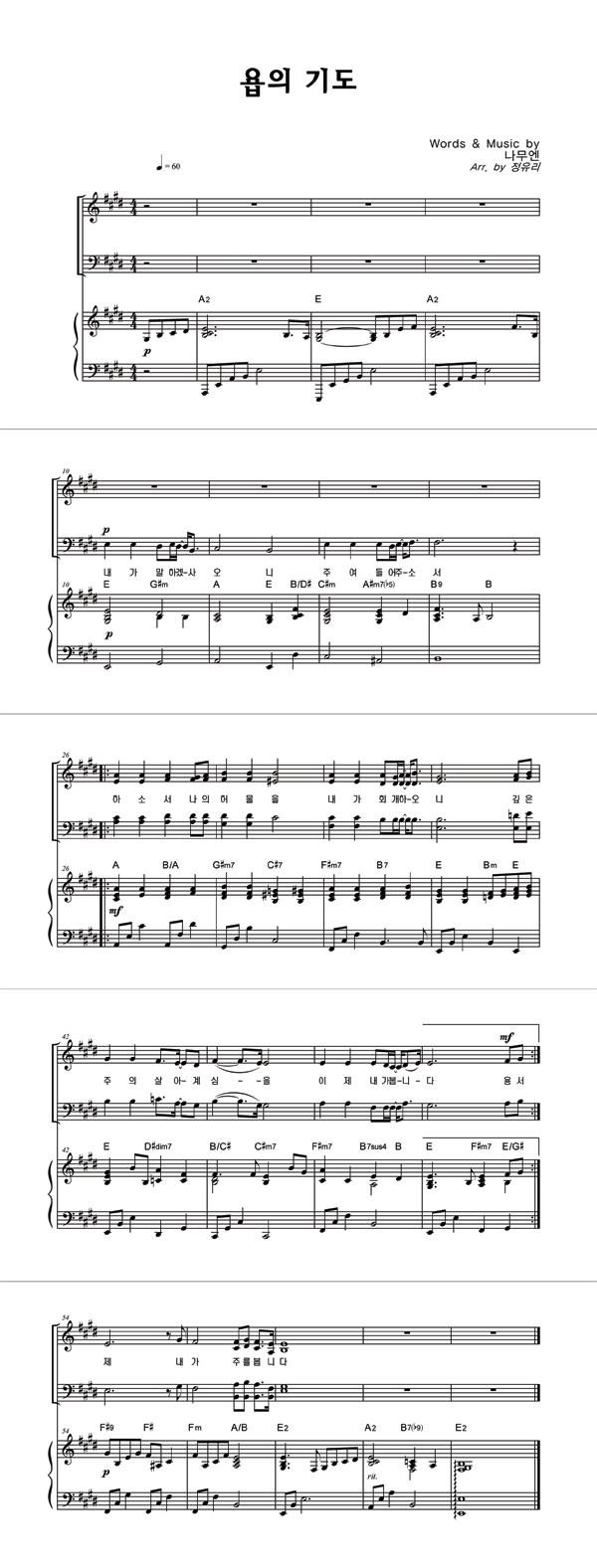 | 욥의 기도 | 성가 2부 + 피아노 반주 |