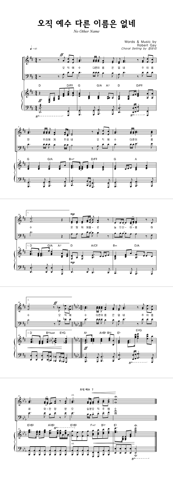 | 주의 이름 높이며 | 성가 4부 + 피아노 반주 |