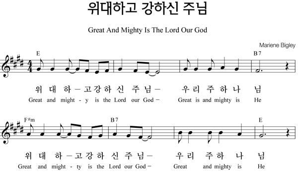 | 주의 이름 높이며 큰글씨 | 성가 2부 + 피아노 반주 |