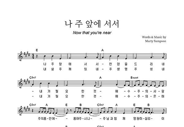 | 주의 사랑을 주의 선하심을 | 성가 2부 + 피아노 반주 |