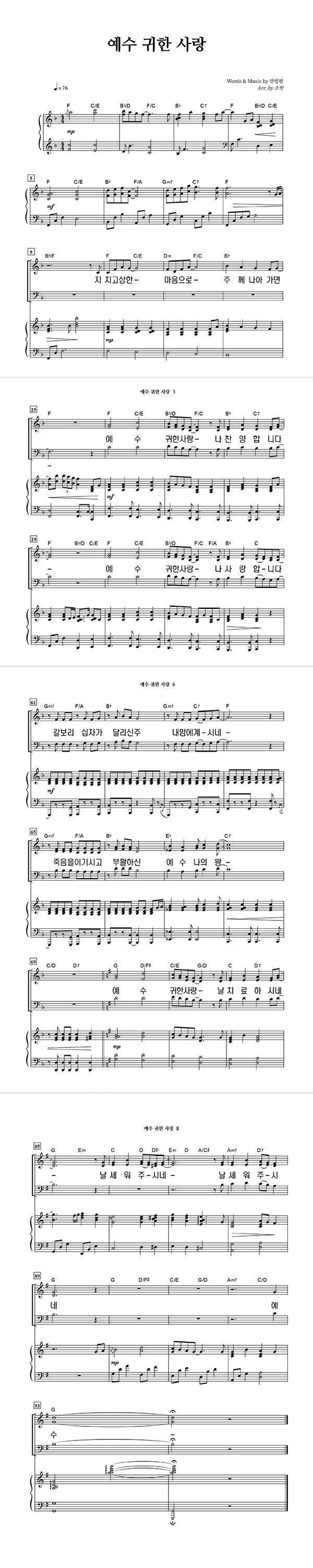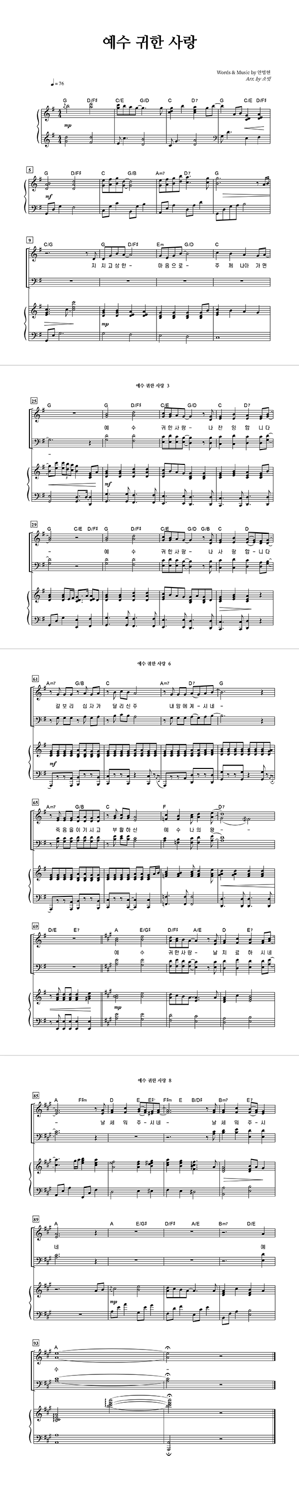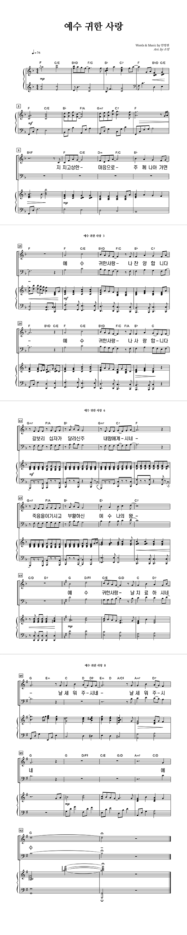 '예수 귀한 사랑' 의 다른 악보형식