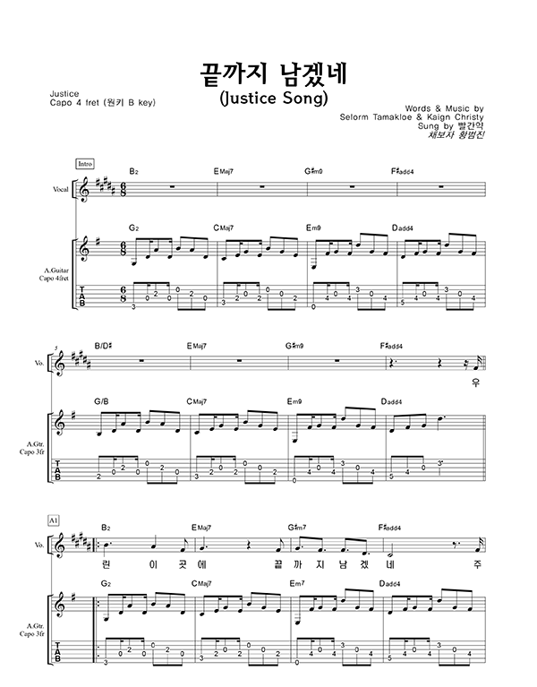 '끝까지 남겠네' 의 다른 악보형식
