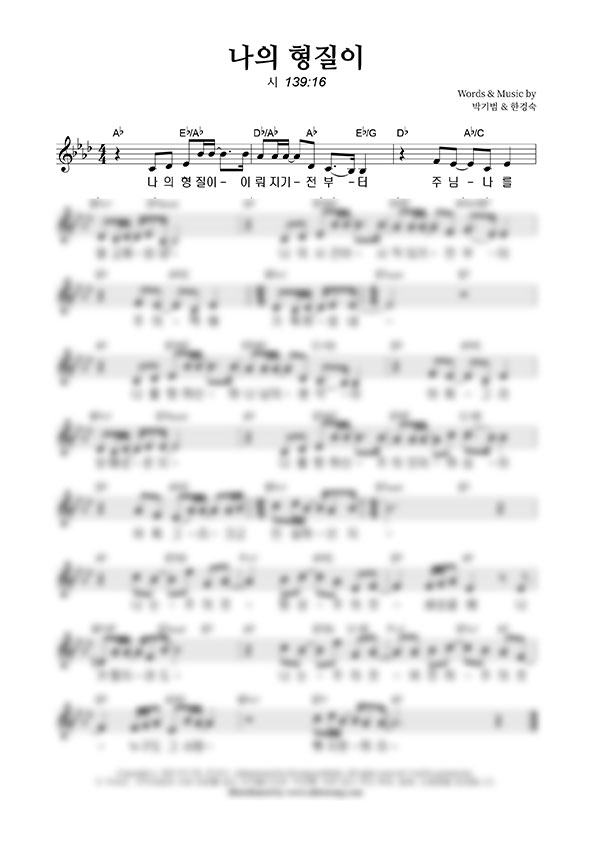 '나의 형질이' 의 다른 악보형식