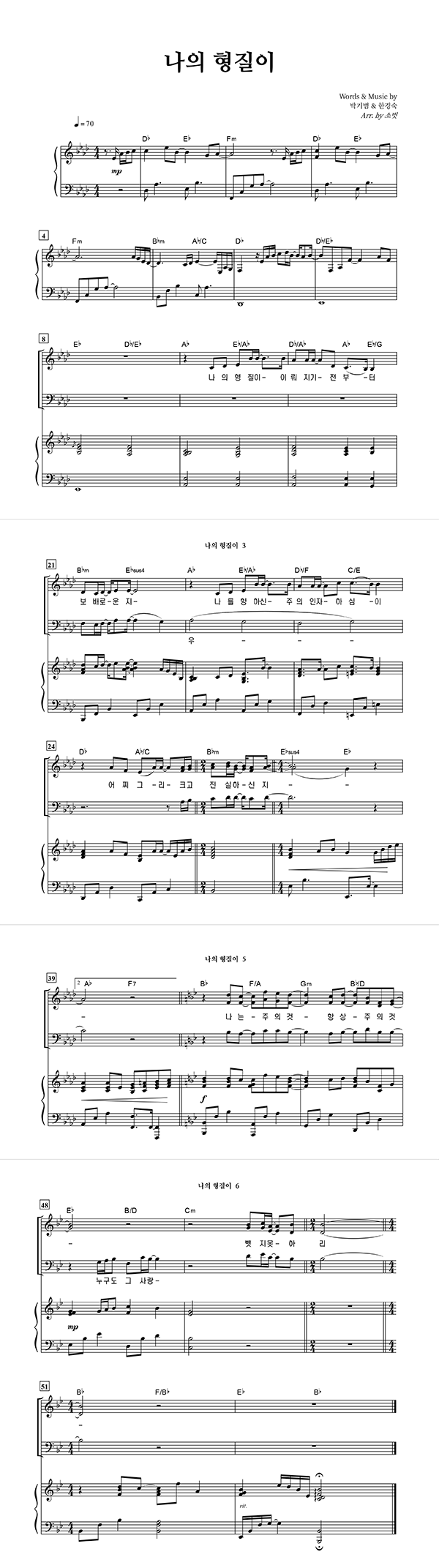 | 나의 형질이 | 성가 3부 + 피아노 반주 |