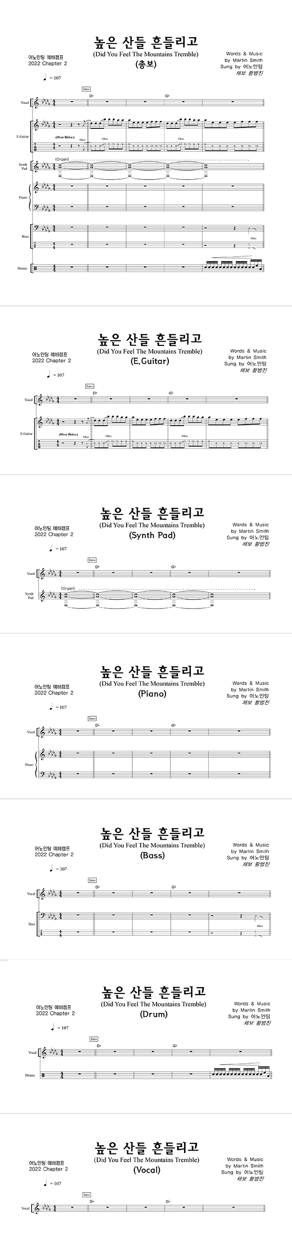 '어노인팅 예배캠프 2022 Chapter 2' 의 다른 악보
