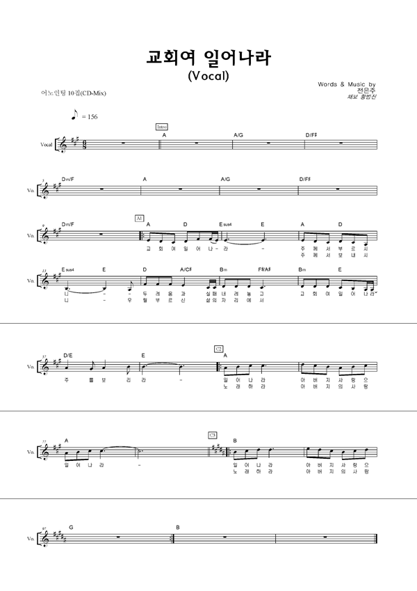 | 교회여 일어나라 | 성가 3부 + 피아노 반주 |