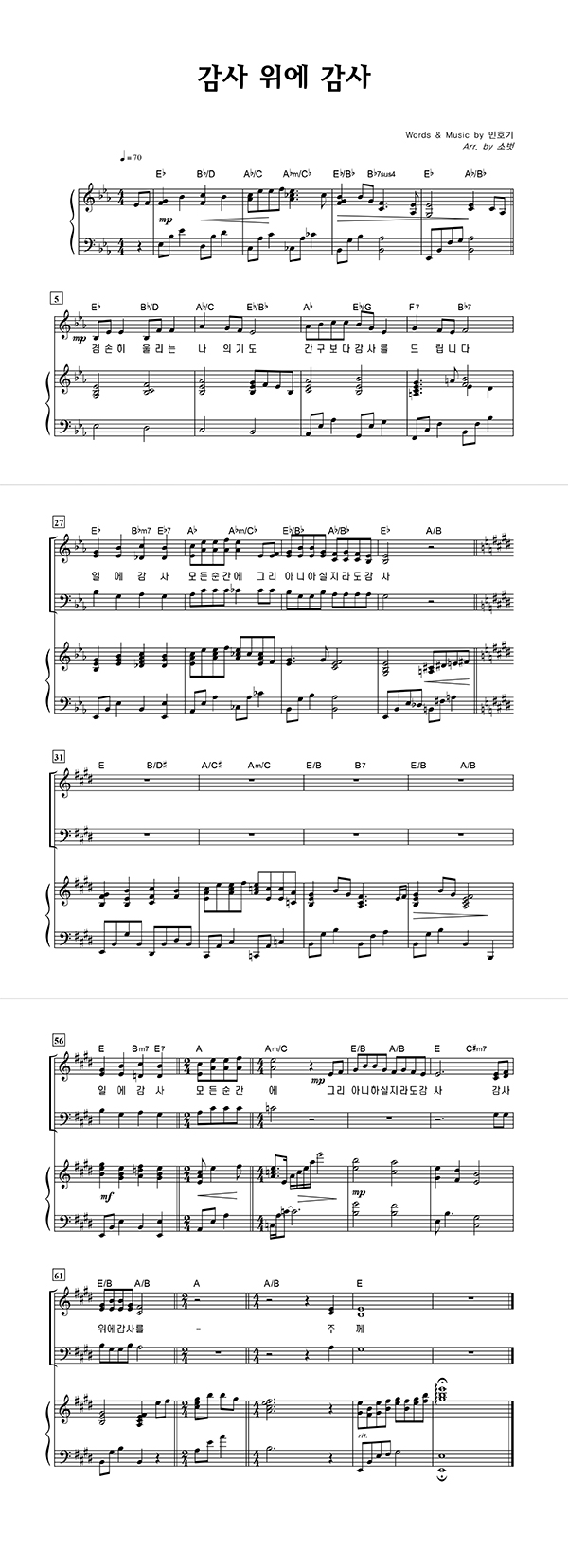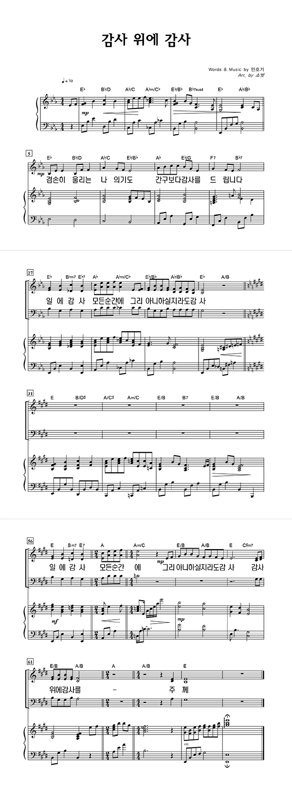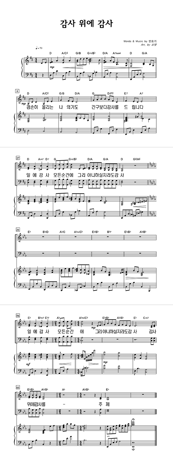 | 감사 위에 감사 | 성가 3부 + 피아노 반주 |
