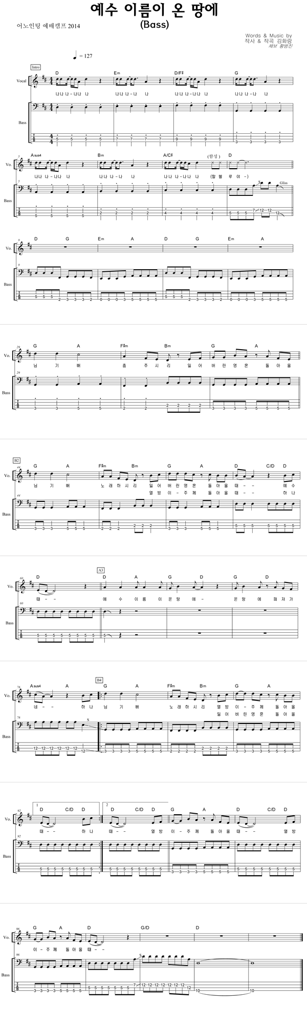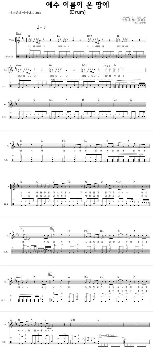 '예수 이름이 온 땅에' 의 다른 악보형식