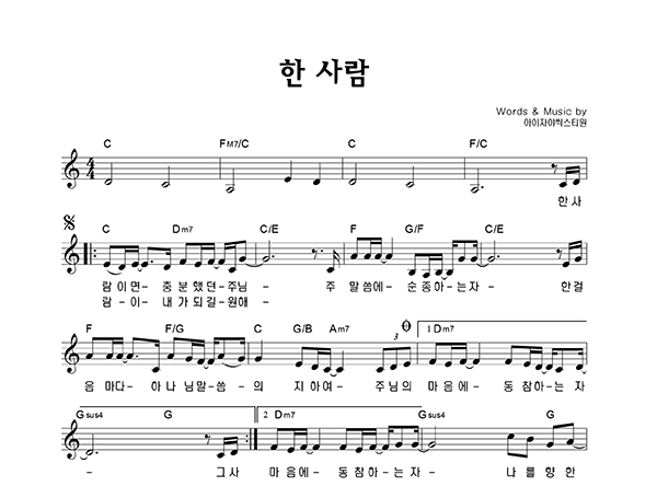 | 한 사람 | 성가 2부 + 피아노 반주 |
