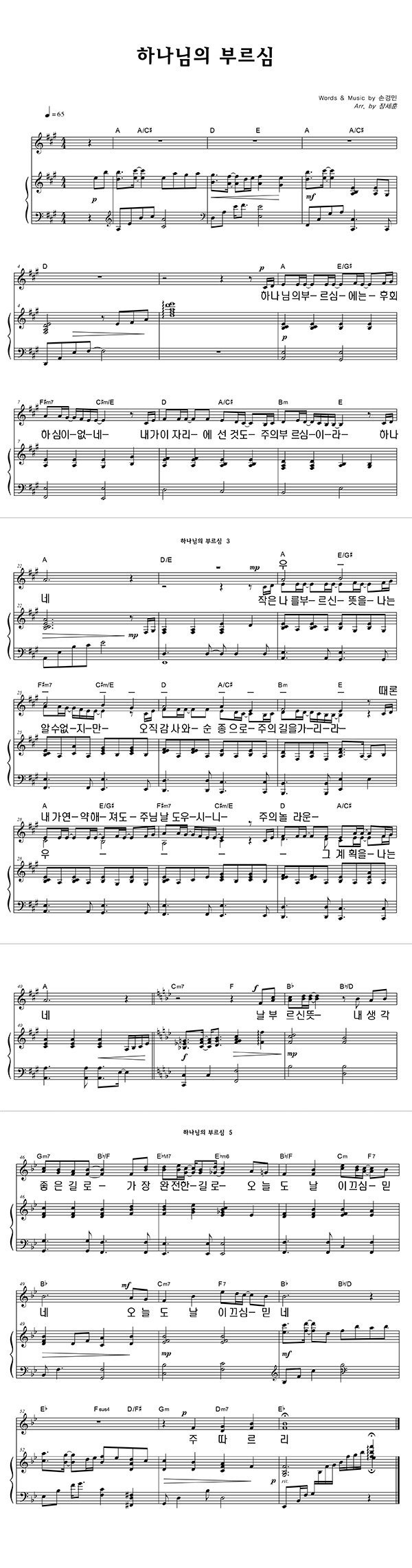 | 하나님의 부르심 | 성가 2부 + 피아노 반주 |