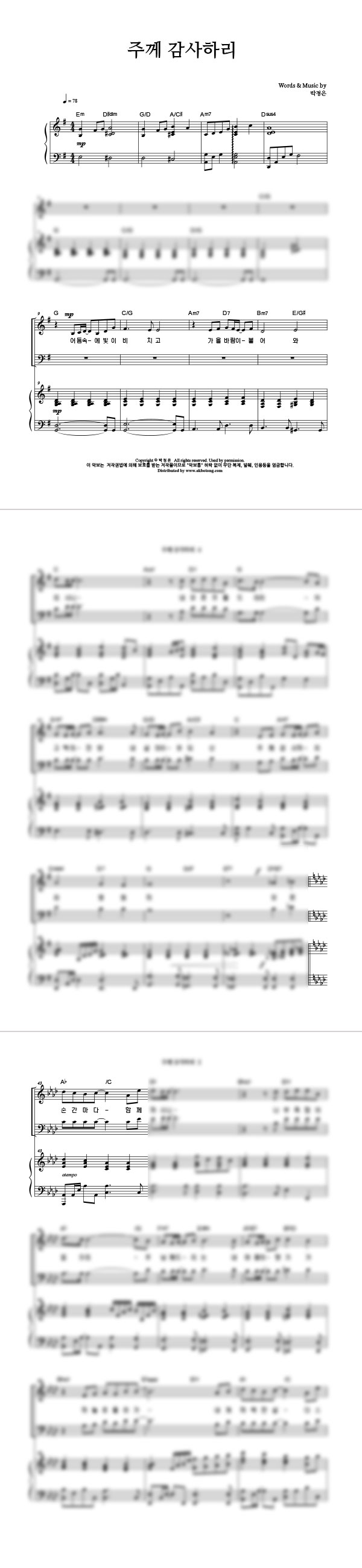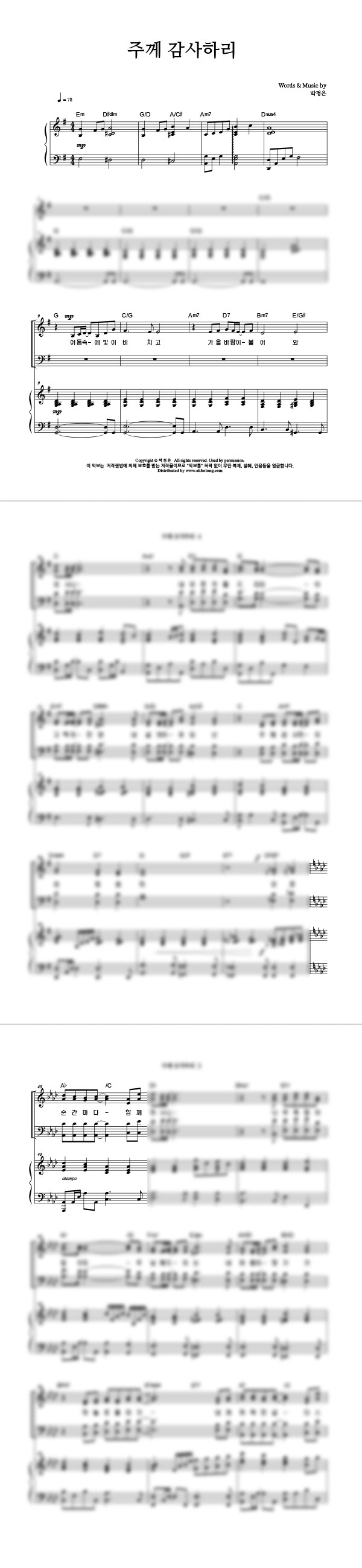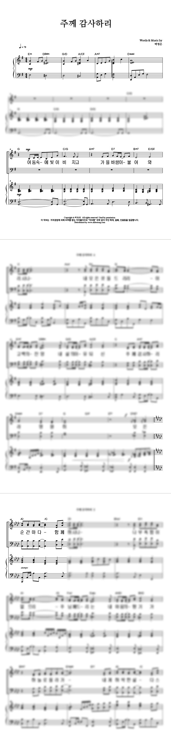 '주께 감사하리' 의 다른 악보형식
