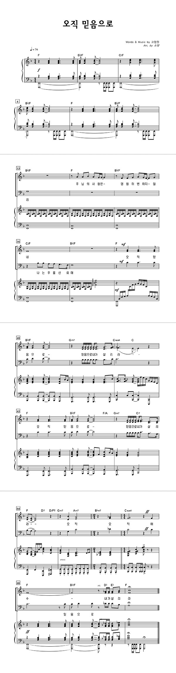 | 오직 믿음으로 | 성가 2부 + 피아노 반주 |