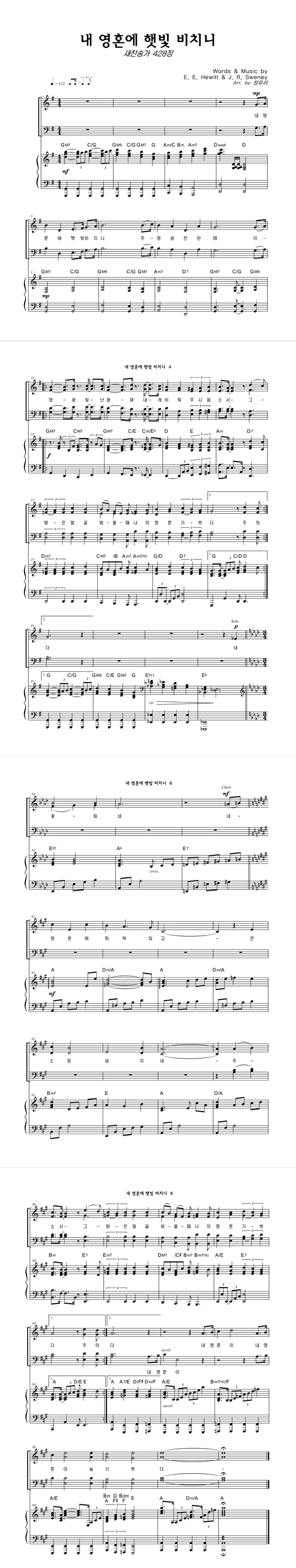| 내 영혼에 햇빛 비치니 (찬송가 428장) | 성가 4부 + 피아노 반주 |