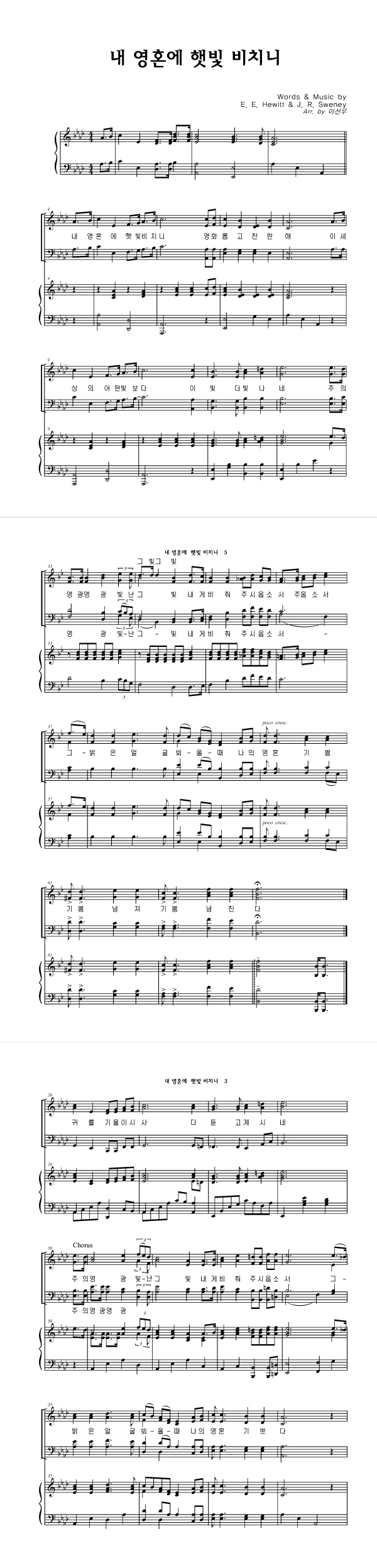 | 내 영혼에 햇빛 비치니 (찬송가 428장) | 성가 3부 + 피아노 반주 |