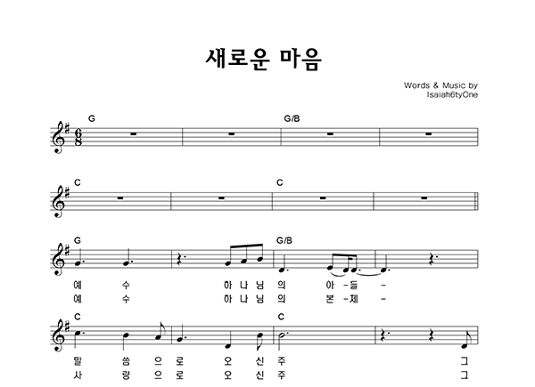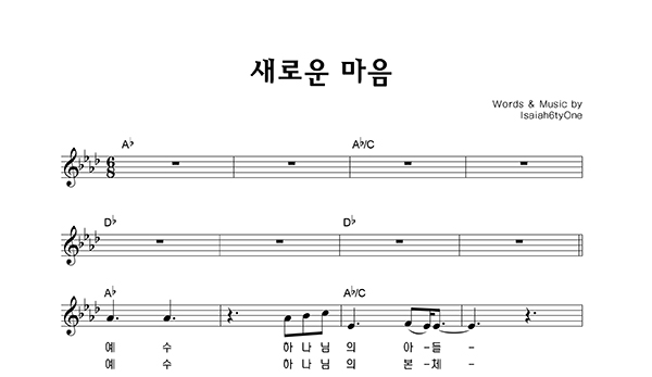 '아이자야 씩스티원 - 새로운 마음' 의 다른 악보