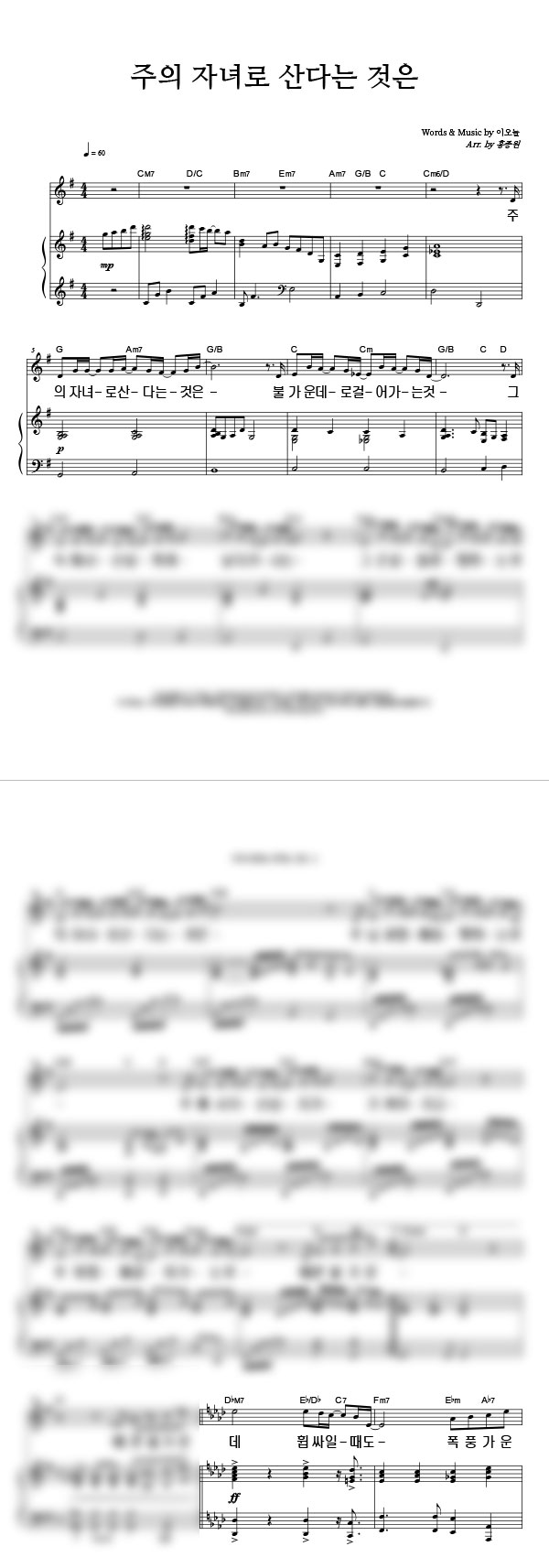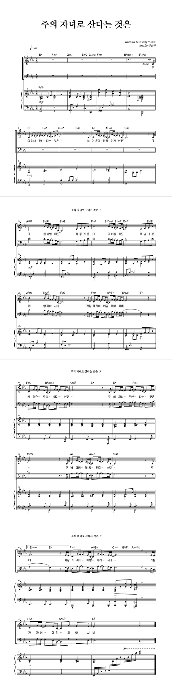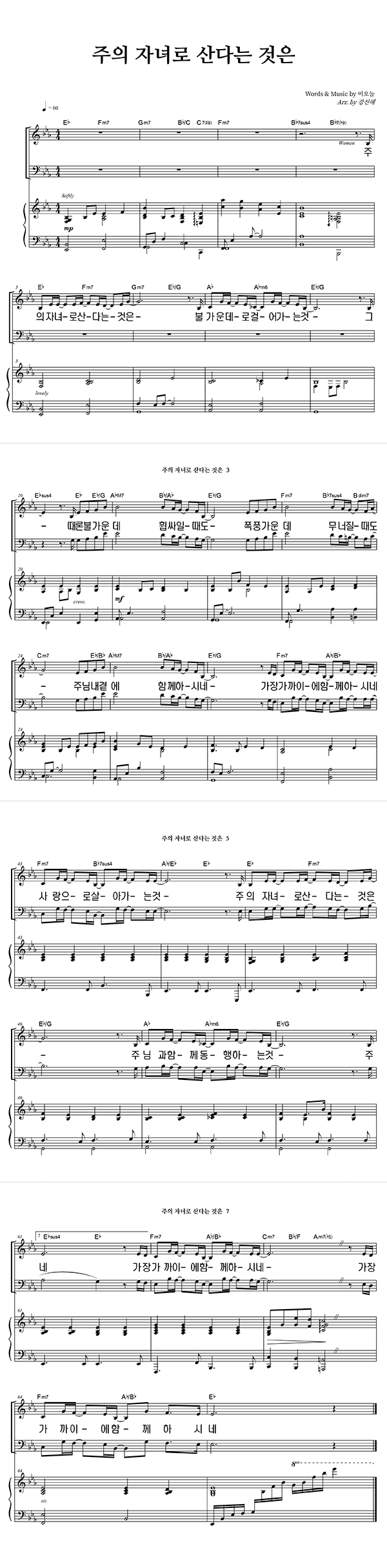 | 주의 자녀로 산다는 것은 | 성가 4부 + 피아노 반주 |
